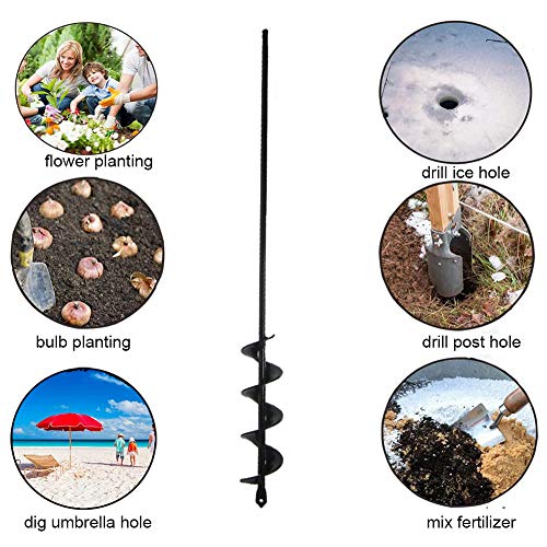 SYITCUN 2"(D) x24"(L) Garden Auger Drill Bit for Planting Solid Shaft Heavy Duty Auger Spiral Drill Bit for Planting Bulb Bedding Plants Plants Drill bit for 3/8” Hex Drive Drill, Black, 2“x24" Item Sku: