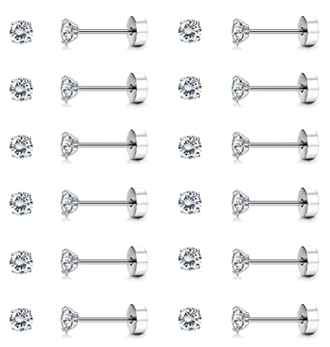 Lolias 12 Pairs Surgical Steel Flat Back