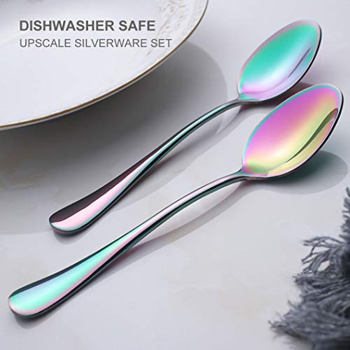 OMGard Dinner Spoon Set Rainbow 6 Piece 18/10 Stainless Steel Kitchen Flatware 7-inch Modern Dessert Spoons Only Service for 6 Colorful Silverware Utensils Cutlery Dishwasher Safe Multicolor
