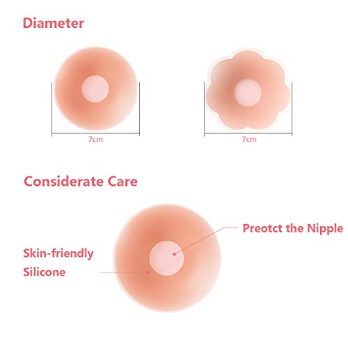 AnFun Silicone Nipple Covers Reusable for Women, Breast Petals Nipplecovers Lingerie Solutions, Pasties Hypoallergenic for Tanning Bed with Case, 2 Pairs (Round + Flower), Pink, Free Size Item Sku: