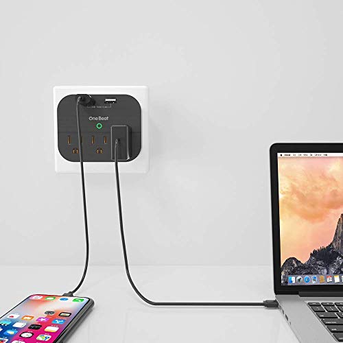 One Beat Outlet Adapter with USB, Multi Plug Wall Outlet with 3 Outlets 2 USB Ports 2.4A Total for Home Office Cruise Ship - Black Item Sku: