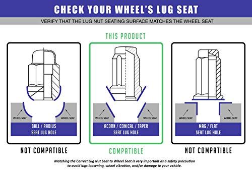 Wheel Accessories Parts Set of 20 1.38in Long Car Small Diameter Lug Nut Closed End Bulge Acorn 6 Spline with Key (1/2x20, Chrome), 1/2 UNF Item Sku: