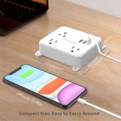 Power Strip with Long Cord, TROND 3-Outlet Extender with 3 USB Ports, 10-Foot Extension Cord, Flat Plug, Wall Mountable, Compact Desktop Charging Station for Dorm Room Home Office, White, 10FT Item Sku: