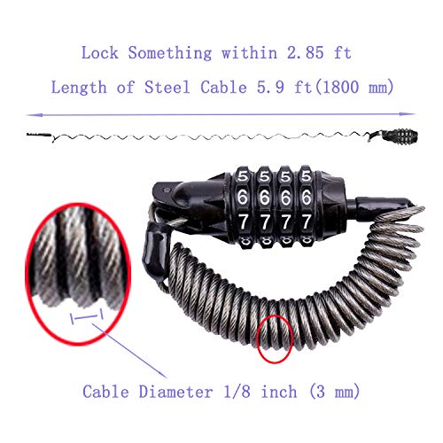 Uiizic Bike Lock Cable, 5.9 Ft Portable
