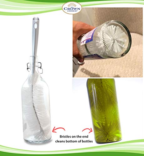 • The Crown Choice 16" Long Bottle Brush Cleaner with Cleaning Bristle Tip | Fits Narrow Neck Bottles, Wine, Beer, S'Well, Decanter, Hydroflask, Thermos, Glass Jugs and Long Narrow Neck Sport Bottles