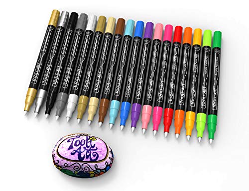 TOOLI-ART 18 Acrylic Paint Markers Paint Pens Assorted Vibrant Markers Set 0.7mm Extra Fine Tip for Rock Painting, Glass, Canvas, Mugs, Wood, Fabric, Metal, Scrapbooking. Non Toxic Water-Based, Quick Drying, red, yellow, green, blue, orange, black, white, fine, extra fine, 0.7mm, 0.5mm