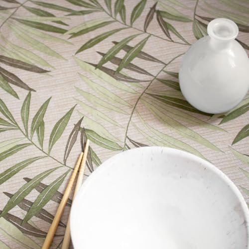 Covers For The Home Deluxe Elastic Edged Flannel Backed Vinyl Fitted Table Cover - Fern Pattern - Round Oblong Oval - Fits Tables up to 48" W x 68" L, Best For Up To 48" x 68"