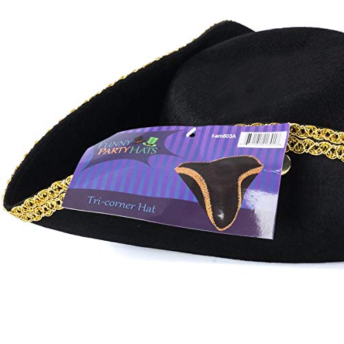 Funny Party Hats Colonial Style Tricorn Hat - Pirate Hat - Revolutionary War Deluxe Colonial Tricorn Hat, 1 Pack, One Size Item Sku: