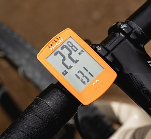 CATEYE Padrone Wireless Bike Computer – Oversized Display Cyclocomputer, Wireless Speedometer & Odometer, FlexTight™ Mount, Auto Start/Stop, Programmable Odometer, Orange