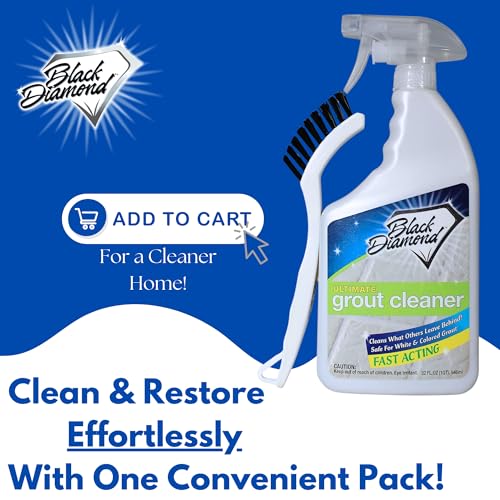 Black Diamond Ultimate Grout Cleaner: Best Cleaner for Tile,Ceramic,Porcelain, Marble Acid-Free Safe Deep Cleaner & Stain Remover for Even The Dirtiest Grout. (1-Quart/1-Brush)