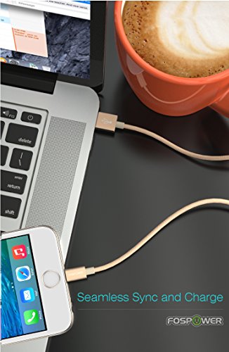 • FosPower [3 FT] Apple MFI Certified 8-pin Lightning to USB Cable [Nylon Braided | Full Speed Charging] Durable Built for iPhone XR, XS, XS MAX, X, iPad Pro Air 2 Mini 3, iPod Touch, Nano (Gold)