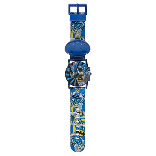 Accutime Batman DC Comics Boys Digital Watch, Flashing LCD Lights, Flip Open, Musical Watch, Blue Plastic Band