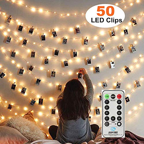 MZD8391 Dimmable 50 Battery-Powered Photo String Lights with Remote Control for Hanging Pictures, Cards, Memos - Warm White, 17.5 FT