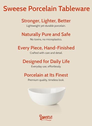 Sweese Porcelain Bowls Set - 6 Inch, 18 oz, White, for Soup, Cereal, Fruit, Rice, Set of 6 - Microwave, Dishwasher, Oven Safe