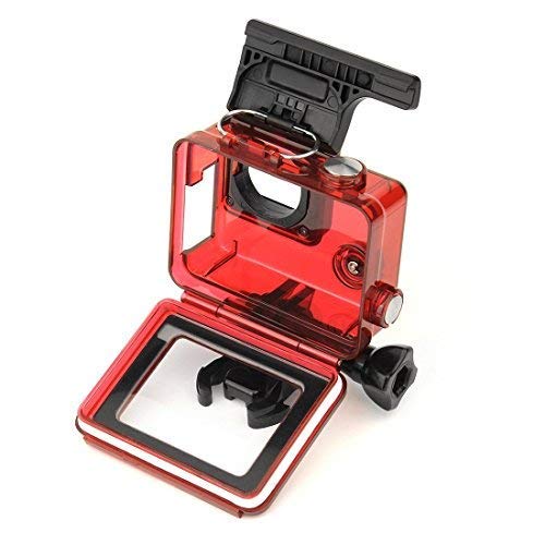 SOONSUN Side Open Protective Case Skeleton Housing Shell with LCD Touch Backdoor and Silicone Lens Cap for GoPro Hero 4, Hero3+, Hero 3 Camera - Transparent Red, Skeleton Housing Case with LCD Touch Backdoor for Item Sku: