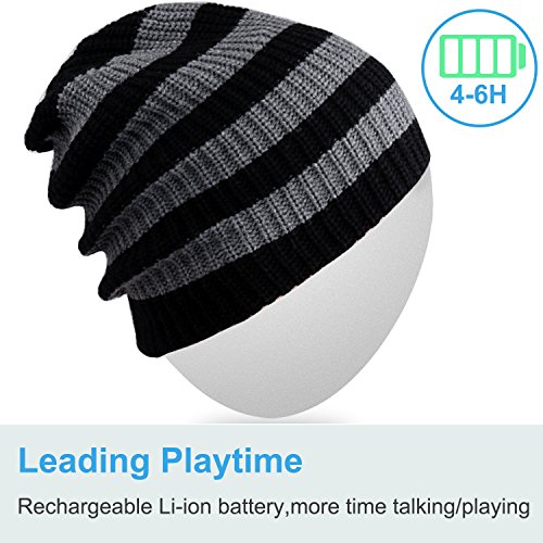 Rotibox Winter Fashional Bluetooth Beanie Hat Music Cap with Wireless Headphones Headsets Earphones Removal Speakers Mic Hands Free for Running Skiing Snowboard Skating Hiking - Black, boys, BB022-Black Item Sku: