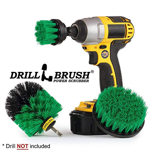 Drill Brush Power Scrubber by Useful Products Drillbrush Green Kitchen Cleaning Drill Brushes - Stainless Steel Sink Cleaner/Copper Sink Cleaner - Electric Stove Cleaner/Gas Stove Cleaner - Kitchen Cleaner/Kitchen Brush - Cabinet Cleaner, Medium-green, 2in,4in, 3.5in Corner Brush