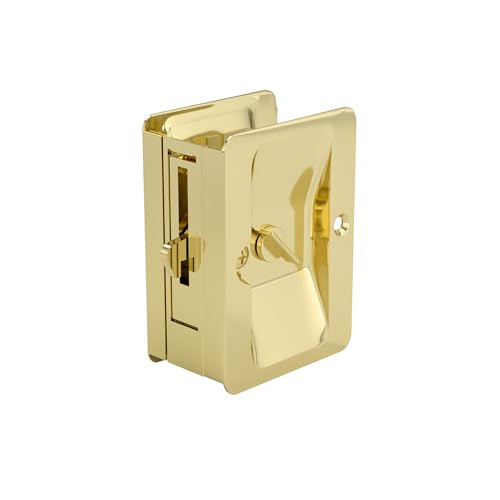 Richelieu Hardware 1701BPSBC Onward Pocket Door Pull, Privacy Lock, 3 1/4 in (82 mm), Rectangular, Brass