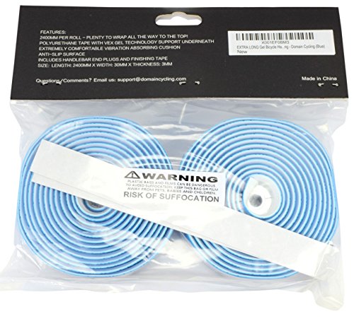 Domain Cycling Bike Handlebar Tape - Waterproof and Extra Long (94" x 1.2") with End Plugs for Road Bike Handles - Polyurethane Gel Road Bikes and Cycling, Blue, Small Item Sku: