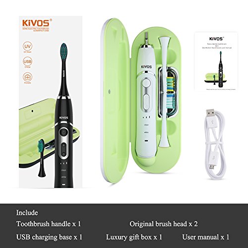 KIVOS Rechargeable Electric Toothbrush, Sonic Battery Powered Toothbrush for Travel&Home with UV Sanitizer Case and Timer, 2 Brush Heads (White), S6102-White(UV) Item Sku: