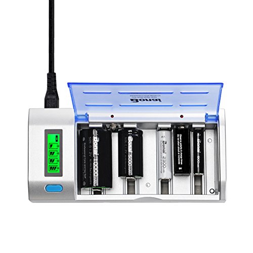 • BONAI LCD Battery Charger for C D AA AAA NiMH NiCD & 9V Lithium Rechargeable Batteries with Discharge Function and AC Plug Fast Charging