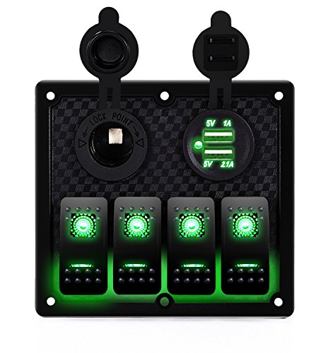 DCFlat 5 Pin 4 Gang / 6 Gang Car Marine Boat Circuit RV LED Rocker Switch Panel Breaker Voltmeter USB for RV Car Boat Blue / Red / Green Light (4 Gang Green) Item Sku:
