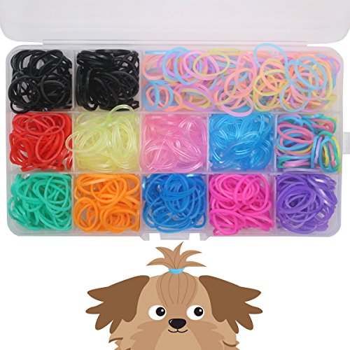 • YOY 3/4" Pet Dog Stretchy Rubber Bands, 600/Box - Puppy Elastics Ties Pony Tail Holders Hair Accessories for Doggy Grooming Top Knots Ponytails Braids and Dreadlocks