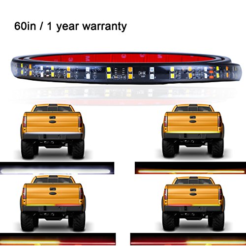60" Double Row Led Truck Tailgate Light Bar Strip Waterproof Side Bed Light ,Yellow Red White 5 Function Reverse Brake Turn Signal Running Double Flashing,for Ford Chevy GMC Dodge by RCRunning, Led Tailgate Light Bar Item Sku: