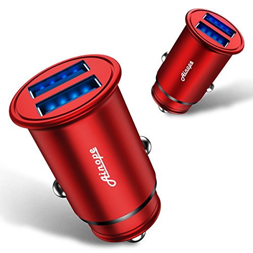 Car Charger, AINOPE Smallest 4.8A All Metal Car Charger Adapter Fast Charge USB Car Charger Flush Fit Compatible with iPhone 13/12/11 pro/XR/x/7/6s, iPad Air 2/Mini 3, Samsung Note 9/S10/S9/S8-Red, 1-Pack Item Sku: