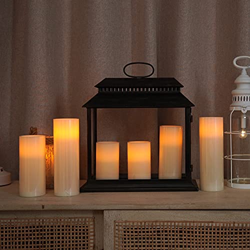• Homemory 9" x 3" Flameless Candles Battery Operated, Flickering LED Pillar Candles with Timers and 2 Remote Controls, Indoor Only, Flat Top, Ivory White Wax, Set of 2