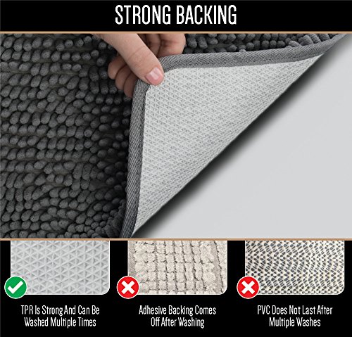 • Gorilla Grip Original Shaggy Chenille 2 Piece Area Rug Set, Many Colors, Includes Square U-Shape Contoured Toilet Mat & 30x20 Bathroom Rugs, Machine Wash Mats for Tub, Shower & Bath Room, Navy Blue