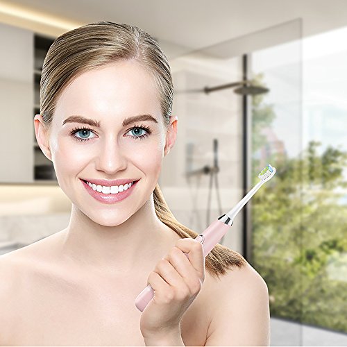 • Electric Wireless Rechargeable Toothbrushes IPX7 Waterproof Sonic Electric Toothbrush with 2 Replacement Brush Heads, 4 Brushing Modes, 2 Min Smart Timer, Charging Base Included, Dentists Recommend