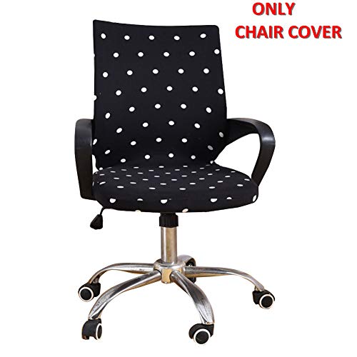 Deisy Dee Universal Computer Office Rotating Stretch Polyester Mid Back Function Chair Cover C111 (White dots)