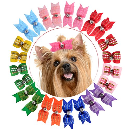 YOY 24PCS/12 Pairs Adorable Grosgrain Ribbon Pet Dog Hair Bows with Rubber Bands - Puppy Topknot Cat Kitty Doggy Grooming Hair Accessories Bow knots Headdress Flowers Set for Groomer