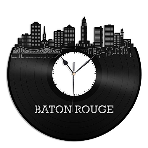 VinylShopUS - Baton Rouge Vinyl Wall Clock Record Hand Made Home Room Unique Gift for Woman| Home Decoration, White Black Item Sku: