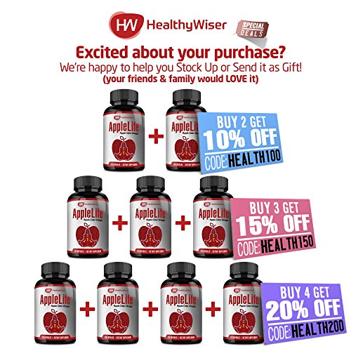HealthyWiser Apple Cider Vinegar Capsules 1000mg - 100% Natural Non-GMO ACV Diet Pills, Detox, Cleanser with Cayenne Pepper and Ginger for Extra Strength, Maintain Healthy Metabolism & Digestive Health - 120ct Item Sku: