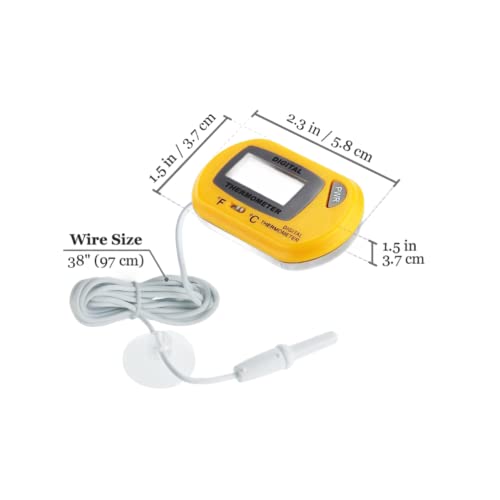 • SunGrow Reptile Digital Thermometer, 1.5” x 2.3” x 0.5”, Easy to Read Display, Yellow, Battery Not Included, 1-Pack