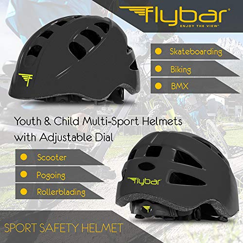 Flybar Kids Bike Helmet - Dual Certified Adjustable Dial, Skateboard Helmet, Roller Skating, Pogo, Electric Scooter, Snowboard, Youth and Toddler Helmet, Boys & Girls 3-14 (Black,L)