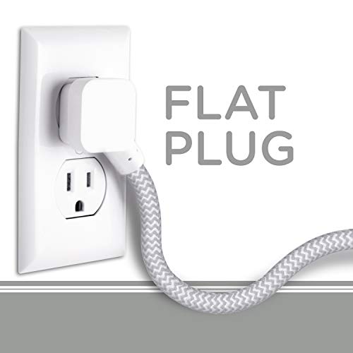 Cordinate Designer USB Charging Station Extension Cord, Power Strip Surge Protector, 2 Outlets, 2 USB Ports, Extra Long 10 Ft Cable with Flat Plug, Braided Cord, 2.4A Fast Charge, Gray/White, 41691 Item Sku: