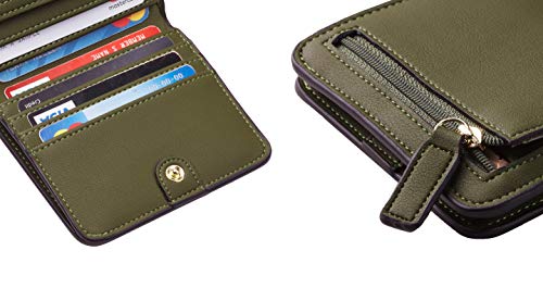 Toughergun Wallet Women Rfid Blocking Small Compact Bifold Luxury Leather Pocket Wallet Ladies Mini Purse with ID Window, 15 ReNapa Green Army, One Size Item Sku:
