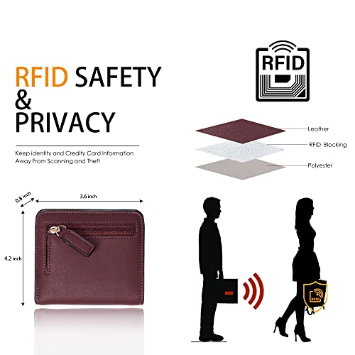 Toughergun Wallet Women Rfid Blocking Small Compact Bifold Luxury Leather Pocket Wallet Ladies Mini Purse with ID Window, 12 ReNapa Red Wine, One Size