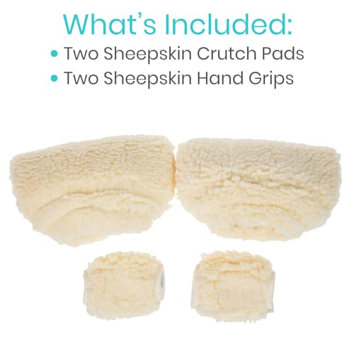 • Vive Sheepskin Crutch Pads & Hand Grips - Comfortable, Breathable, Machine Washable Padding for Adults - Premium Accessory Covers for Crutches, Armpits - Latex-Free & Non-Toxic