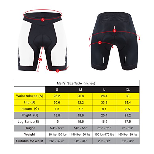 Eco-daily Men's Cycling Shorts Padded Bicycle Riding Half Pants Bike Biking Cycle Tights (1807-white, XL), mens