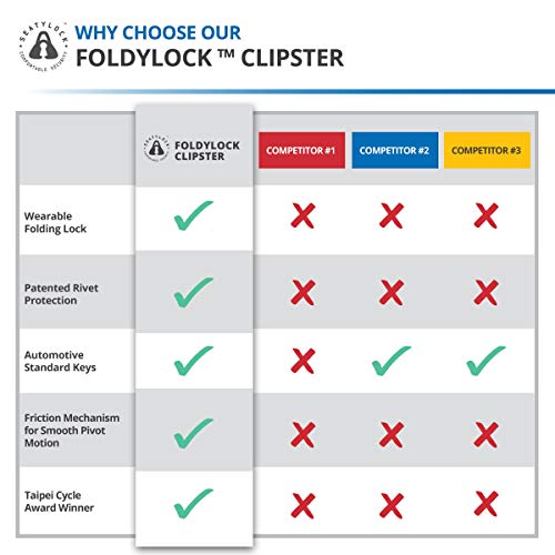 • FoldyLock Clipster Folding Bike Lock - Award Winning Wearable Compact Bicycle Lock - Ultra Sleek Lightweight Smart Bike Security Accessory with Key Set for Bikes E Bikes and Scooters