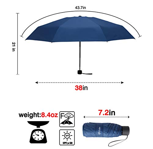 Fidus Upgraded Mini Travel Sun&Rain Windproof Umbrella - Lightweight Folding Compact Portable Parasol Outdoor Umbrellas for Men Women Kids-Navy, A3.Navy