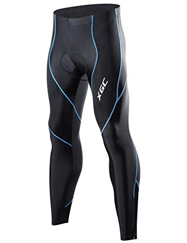 XGC Men's Long Cycling Pants Trousers Bike Pants Trousers Tights Legging with 4D Sponge Padded (Blue, XXL), mens