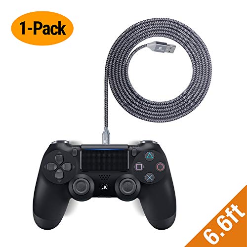 • EXINOZ Braided Charger Cable for PS4 DualShock and Xbox One Controller | Ideal Length Xbox and PS4 Controller Charging Cable | 1 Year Replacement Warranty (6.6ft, 1 Pack)