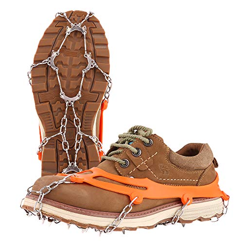 Hapire Orange Traction Cleats Crampons Unisex Men Women Ice Grippers Anti-Slip Stainless Steel Snow Spikes Shoes Boots Spikes Winter Walking Hiking Climbing Spikes