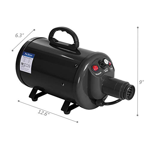 Bonnlo 2400W 3.2HP Stepless Adjustable Speed Pet Dryer Dog Hair Dryer Pet Grooming Blower with Heater Quick - 4 Different Nozzles (Single Motor)(Black) Item Sku: