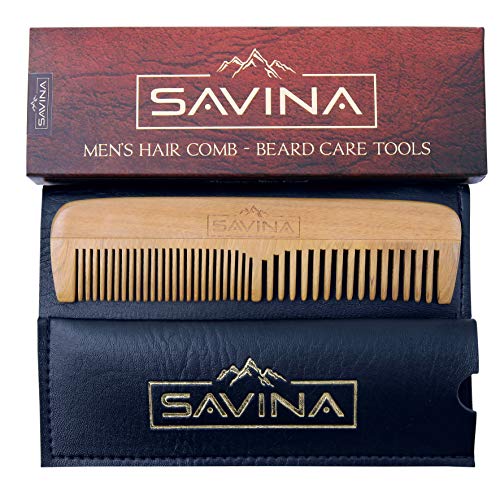 Comb For Men - Hair & Beard Comb with Fine & Medium Tooth - Anti-Static & No Snag - Wooden Comb for Head Hair, Short & Big Beard, Mustaches with Premium Carrying Pouch in Design in Gift Box by Savina. Item Sku: